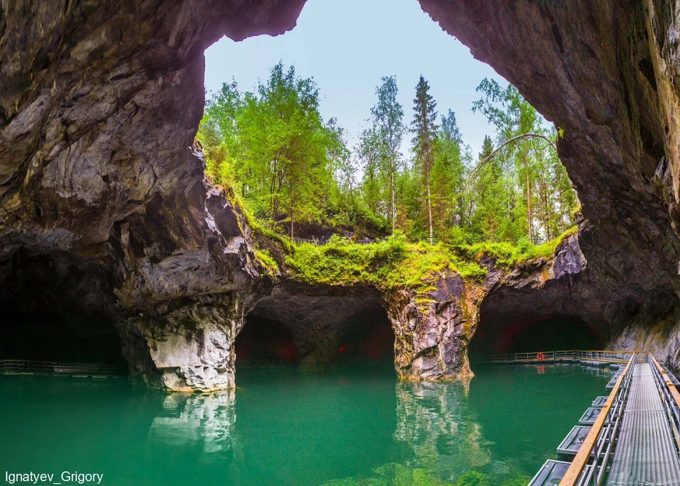 - Отправиться на экскурсию «Подземный космос» по пещерам «Рускеалы» к подземному озеру. Этот уникальный экскурсионный маршрут открыли в 2017 году. В течение часа под присмотром гида вас проведут по расчищенным штольням, покажут мраморные пещеры, колонный зал и подземное озеро. Всё пространство пещер оформлено разноцветной динамической подсветкой, часть которой смонтирована под водой. Благодаря ей и музыкальному сопровождению посетители получают нереальные визуальные впечатления.