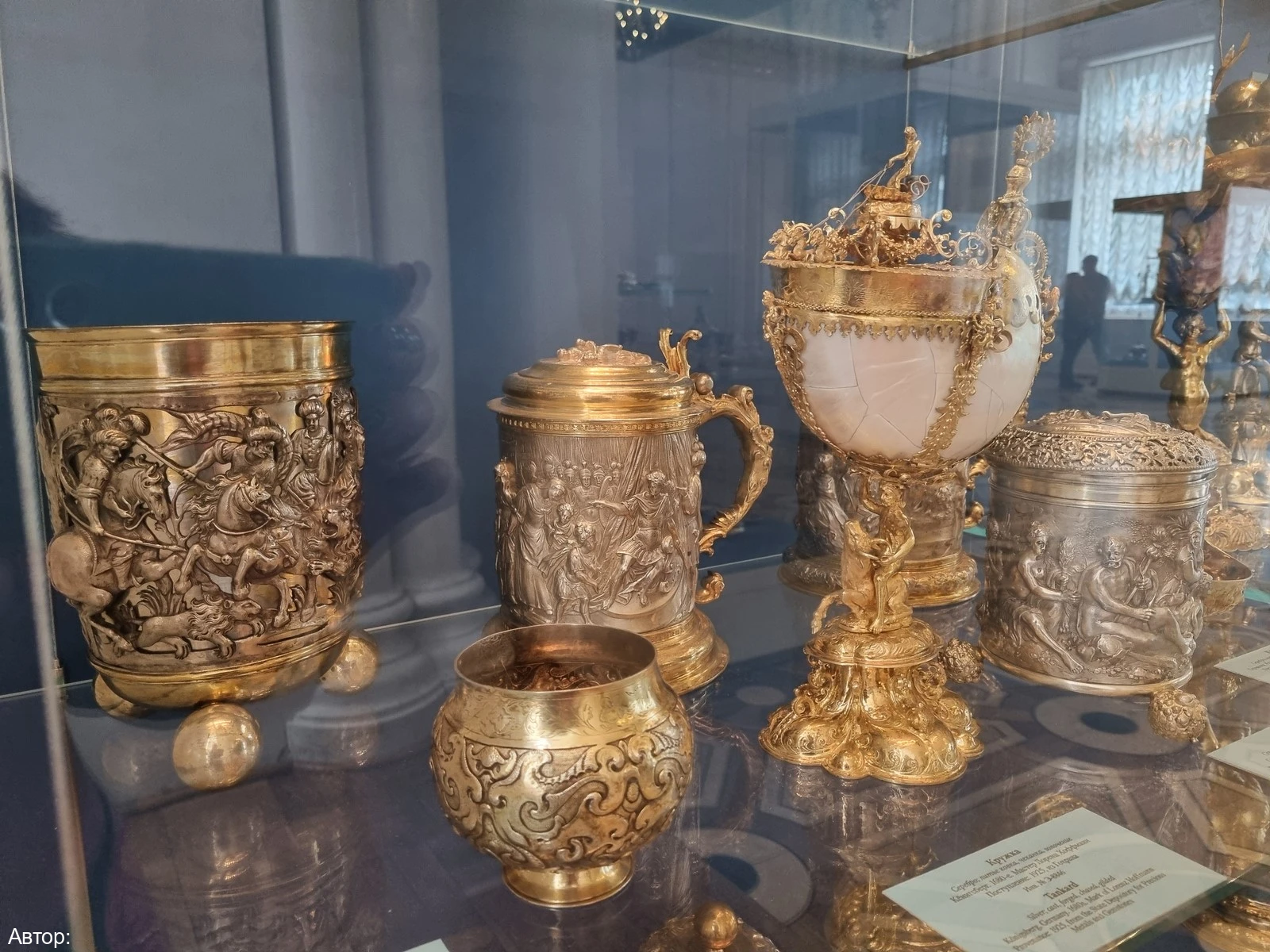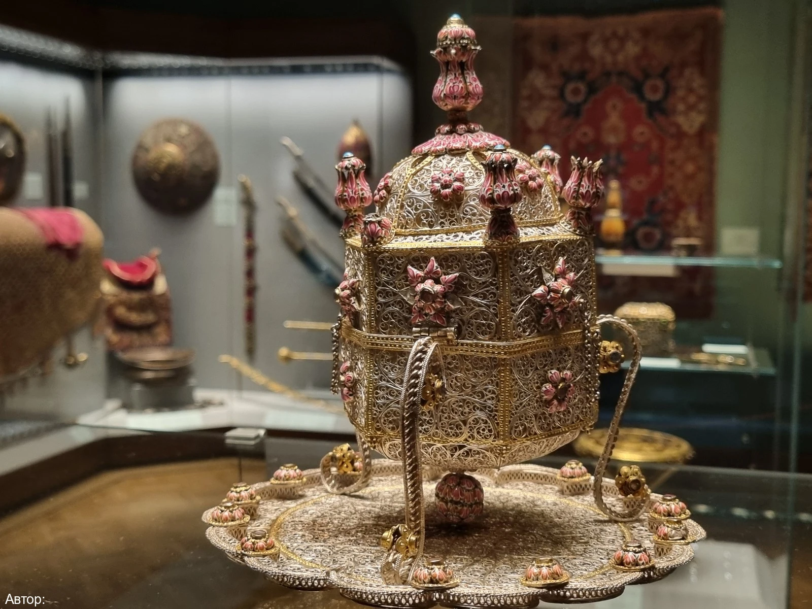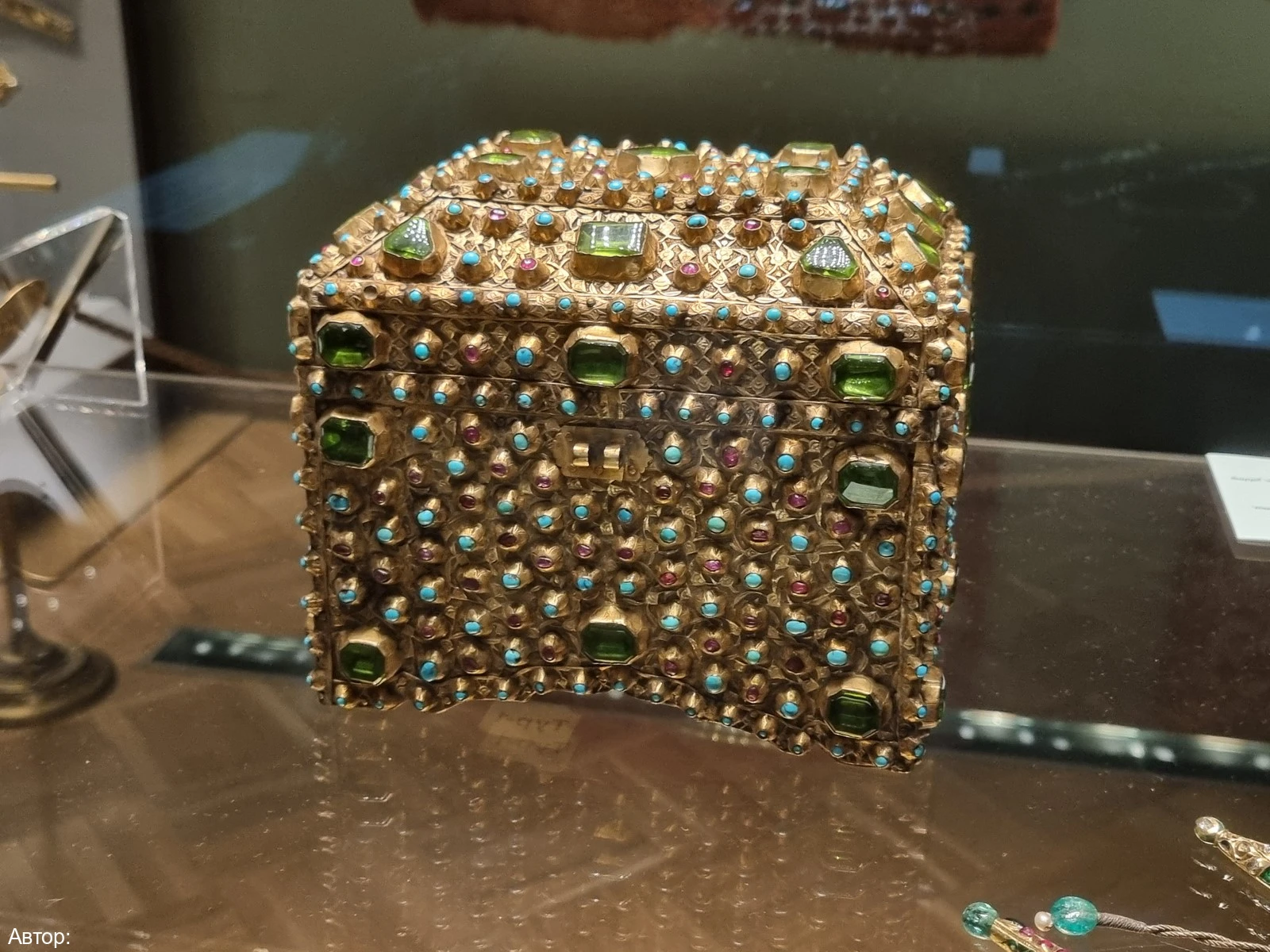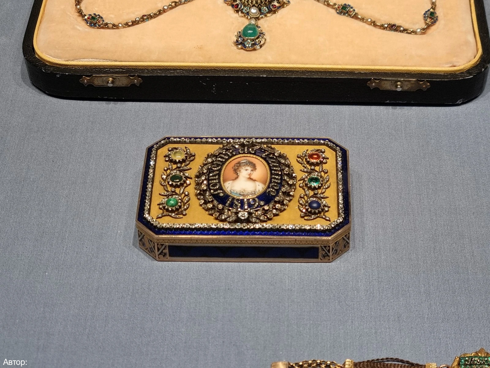 Вы увидите много интересного: икону Казанской Божией матери, драгоценный оклад которой украшен миниатюрными брелоками в виде пасхальных яиц, изготовленных в мастерской Фаберже; орден Андрея Первозванного; ларец из приданого принцессы Софии Шарлотты; подвеску «Каравелла» с огромным изумрудом; туалетный прибор из 46 предметов, на изготовление которого ушло 45 кг золота; конский убор с алмазами и другие сокровища.