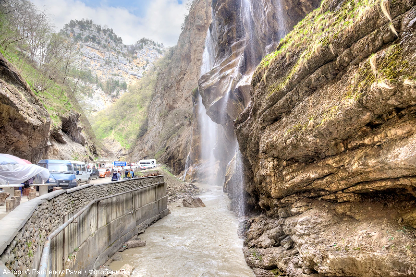 Зимой падающая вода замерзает и на склонах ущелья появляются волшебной красоты ледопады, достойные стать украшением дворца сказочной Снежной королевы. Горная река с быстрым течением не боится морозов и продолжает свой бесконечный бег по дну ущелья.
