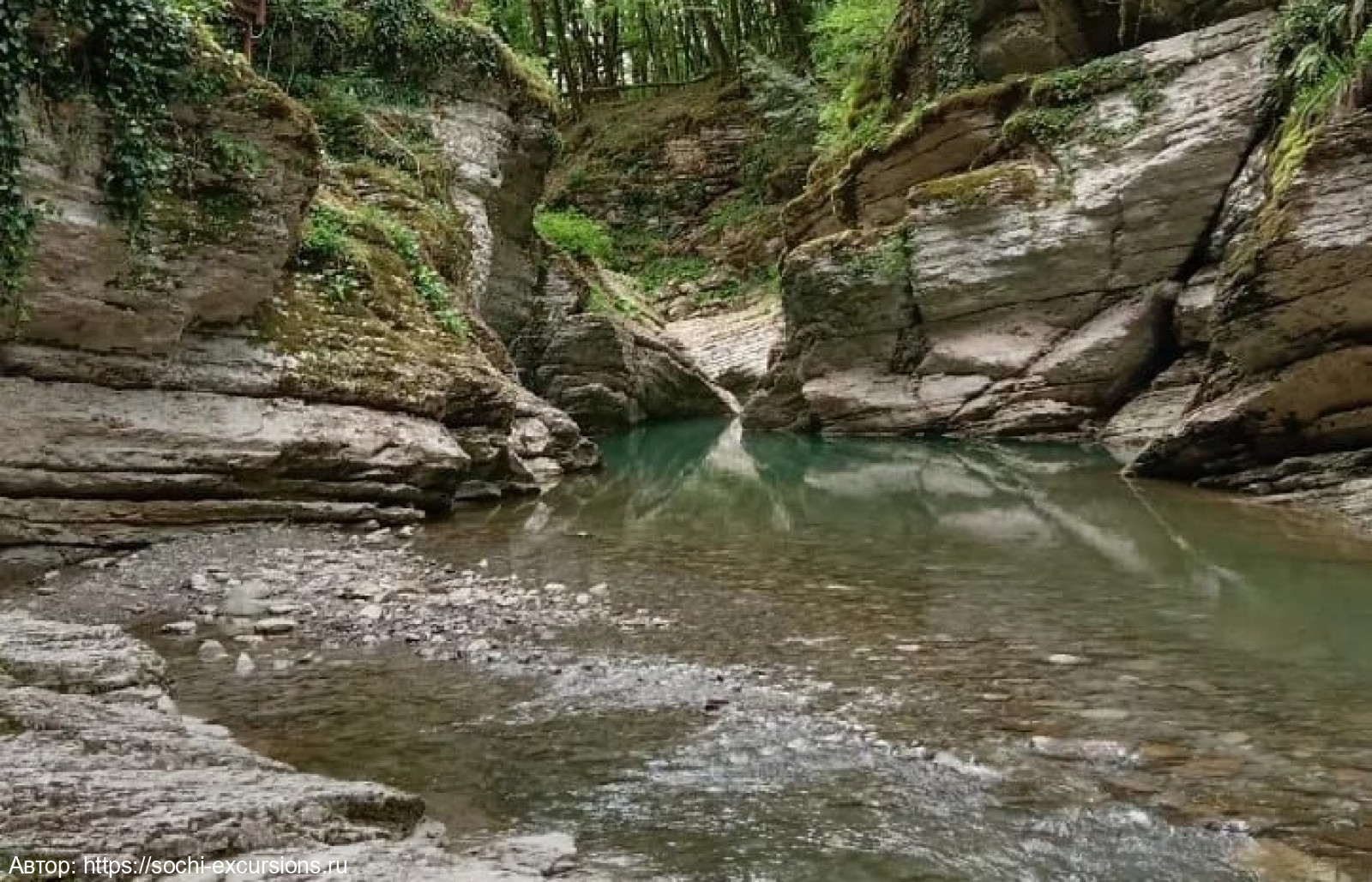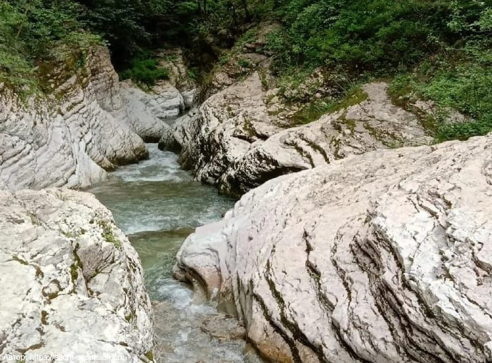 Глубокая впадина каньона создана самой природой. На протяжение долгих лет река Псахо точила горную породу, как искусный скульптор. Сегодня лазурные воды создают умопомрачительный пейзаж. Не менее завораживающие ландшафты в округе.