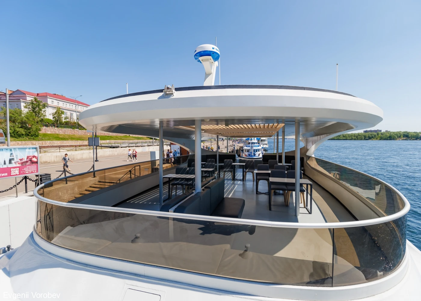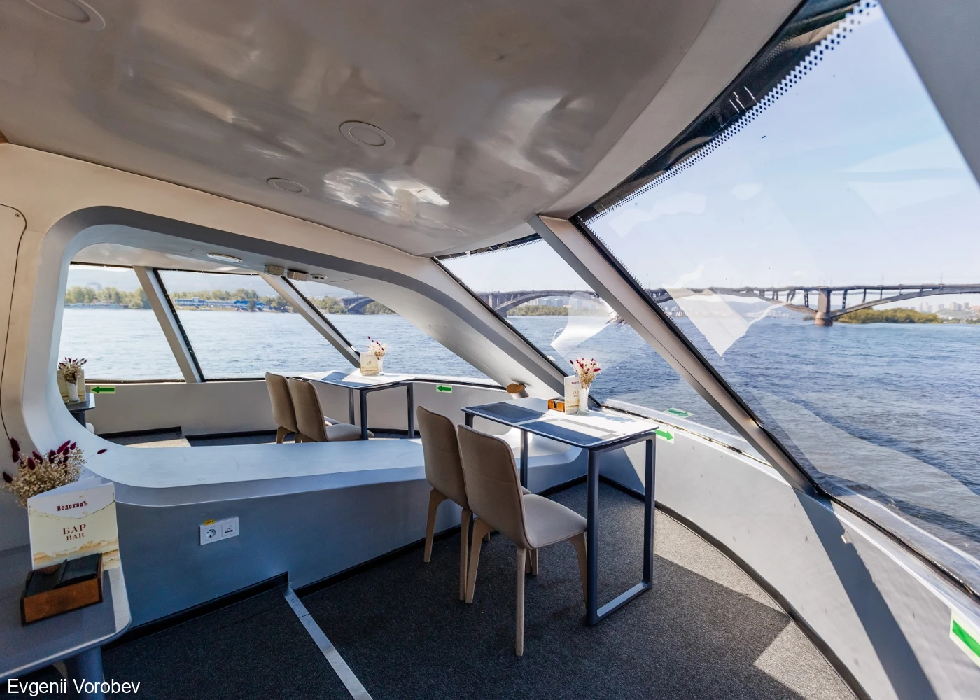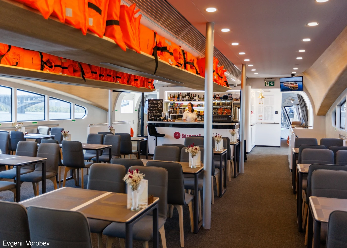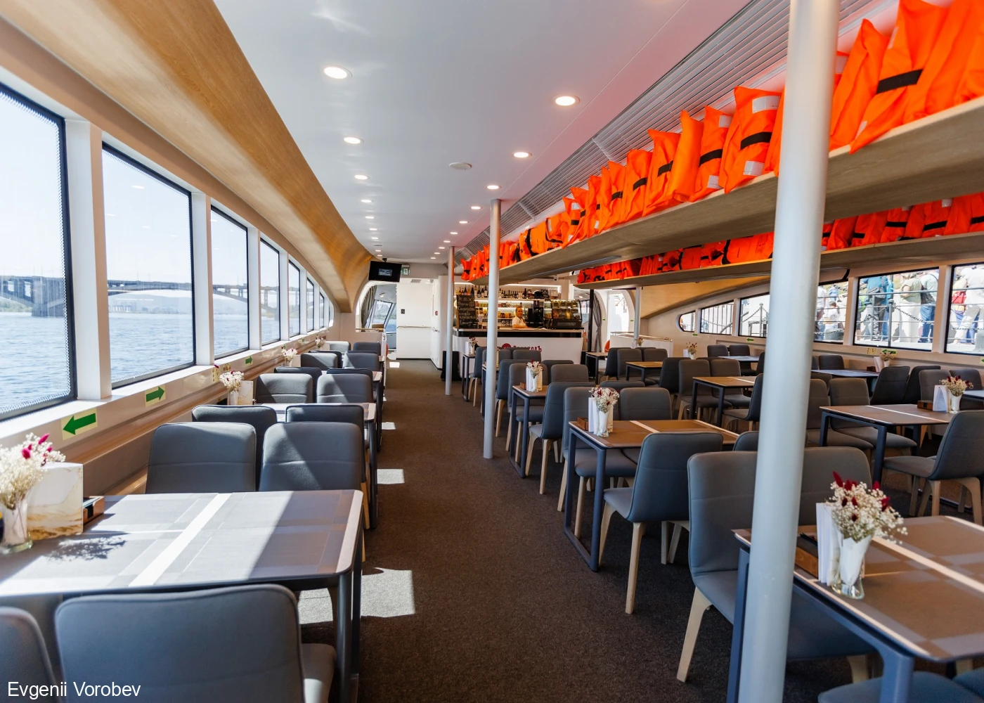 На борту электросудна работает бар, поэтому вы в любое время сможете насладиться прохладительными или горячими напитками.