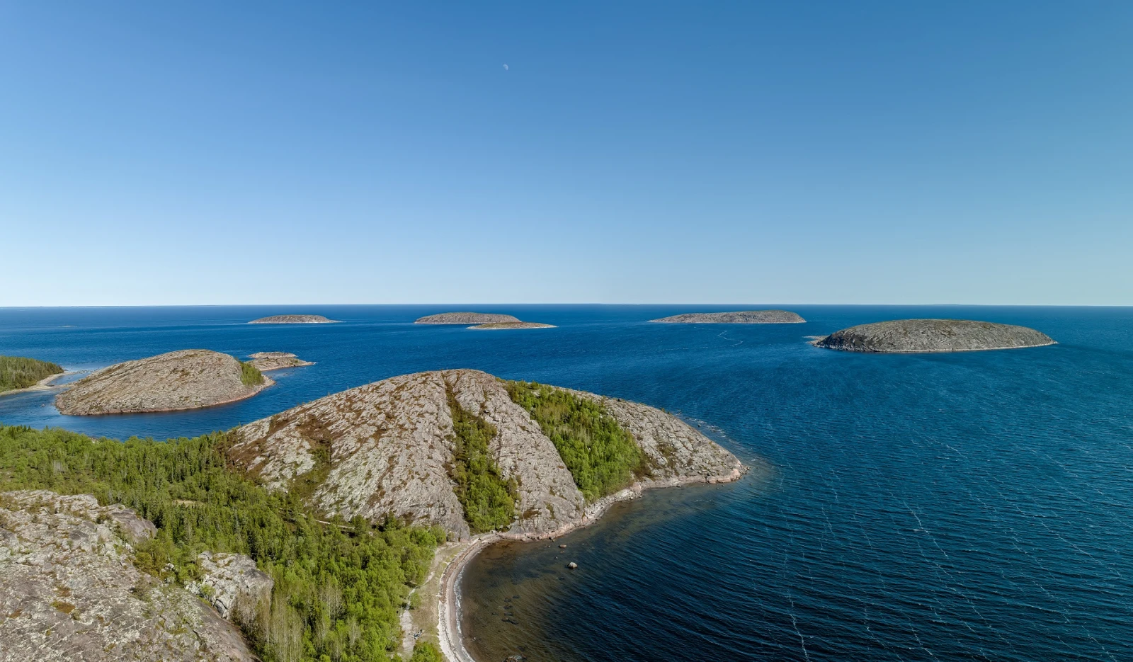 Захватывающие виды открываются с самой высокой точки с высоты – 118 метров. С натуральной смотровой площадки можно наблюдать близлежащие острова – Северная Тупчиха, Куричья Нилакса и острова Дарьи.