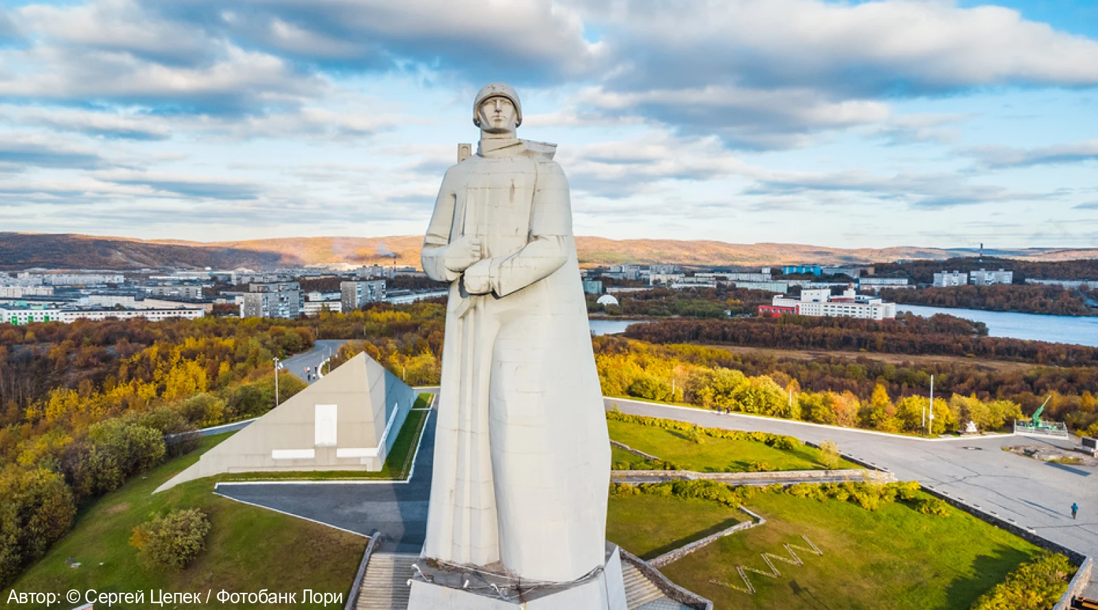 Самый высокий памятник за Полярным кругом, Мемориал «Защитникам Советского Заполярья в годы Великой Отечественной войны». Взгляд воина устремлен на запад, в сторону Долины Славы, где во время Великой Отечественной войны проходили наиболее ожесточенные бои на подступах к Мурманску.