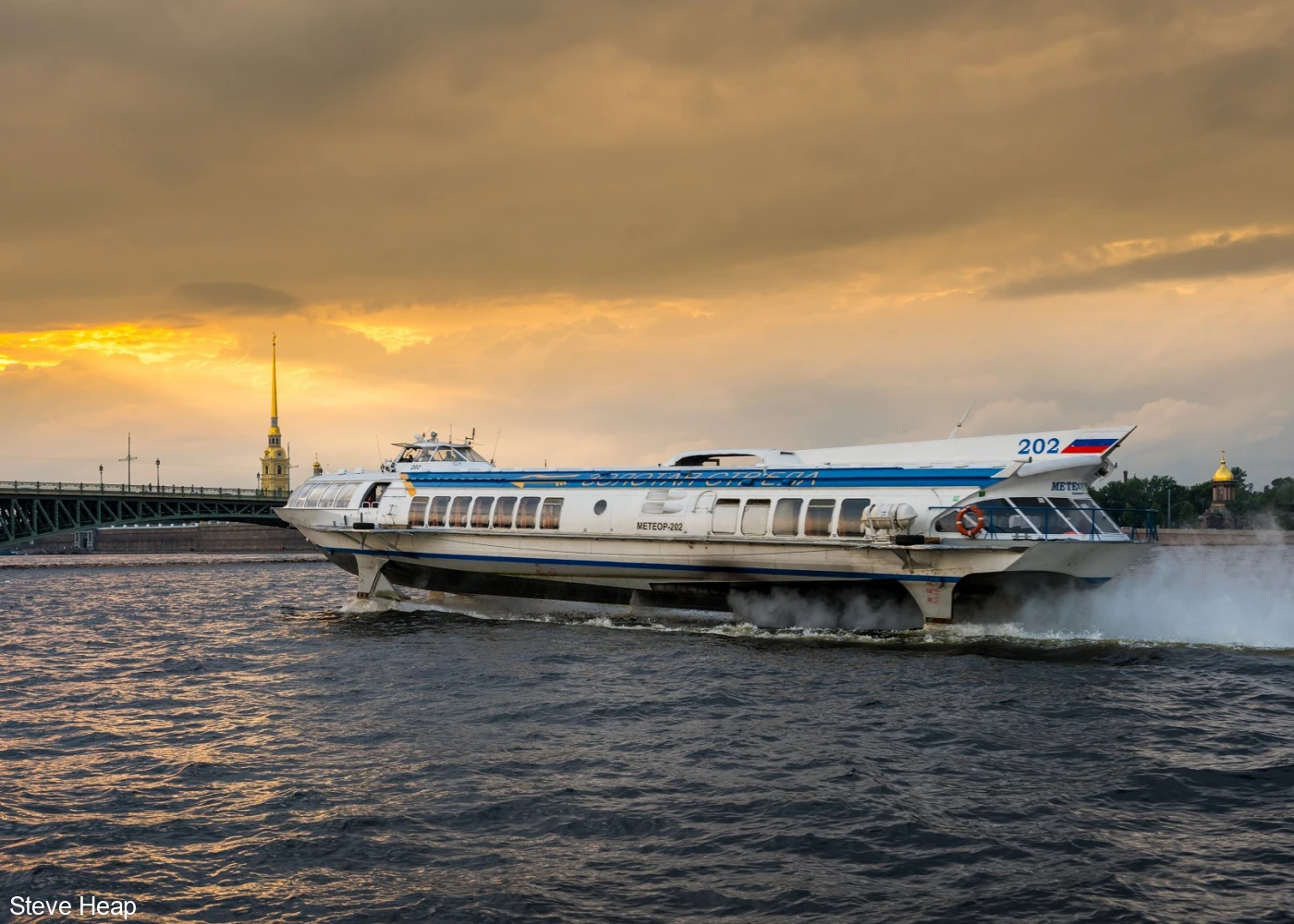 Вы совершите морскую прогулку на комфортабельном скоростном метеоре на подводных крыльях (время в пути 35-40 минут). Метеоры оборудованы эргономичными креслами, санузлом и баром. На пути в Петербург вы увидите достопримечательности XXI века - самый северный небоскреб «Лахта Центр» (462 метра), Западный скоростной диаметр, футбольный стадион «Газпром Арена».