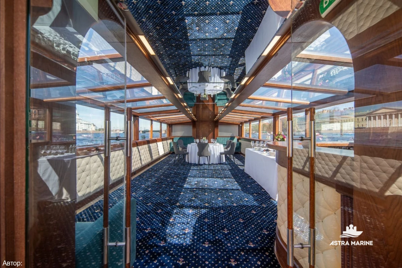 Огненные цветы распускаются в небе и отражаются в тёмных водах Невы, а вы находитесь в центре событий. На теплоходе вам будет комфортно в любую погоду, а фуршет с безлимитными напитками раскрасит Ваш вечер. В ясную и тёплую – наблюдайте буйство красок с палубы, в ненастье – из салона через панорамные окна.