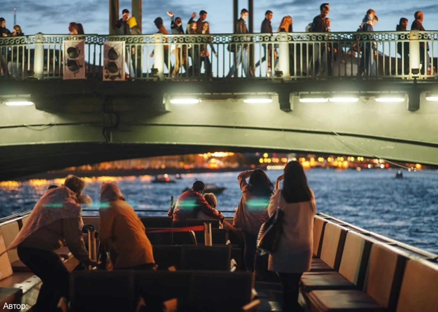 Музыкальная прогулка по Неве – это чарующий, чуть хрипловатый голос саксофона над темной водой, поднятые пролеты мостов, длинная вереница судов на реке, дружелюбная атмосфера в уютном салоне и свежий ветер на открытой палубе. Путешествие начинается за десять минут до полуночи и продолжается почти три часа. Теплоход отходит от Адмиралтейской набережной, расположенной в историческом центре Санкт-Петербурга.