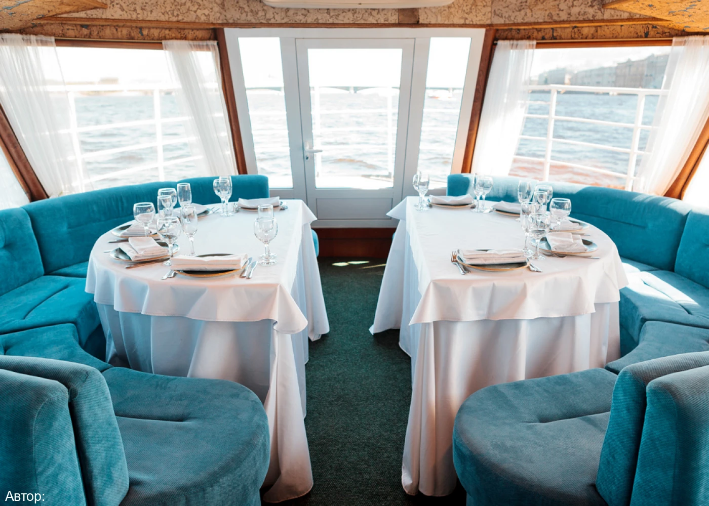 - водная прогулка на комфортабельном двухпалубном теплоходе-ресторане.