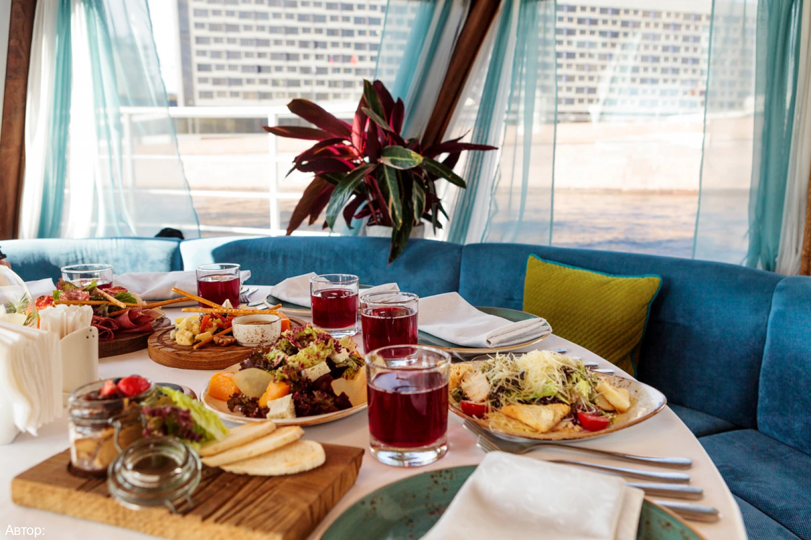 - водная прогулка на комфортабельном двухпалубном теплоходе-ресторане;