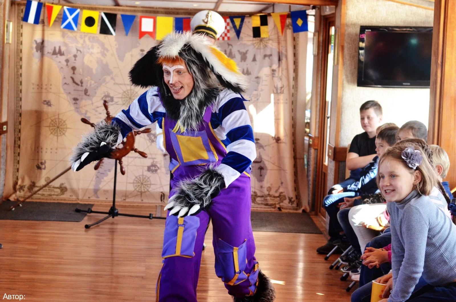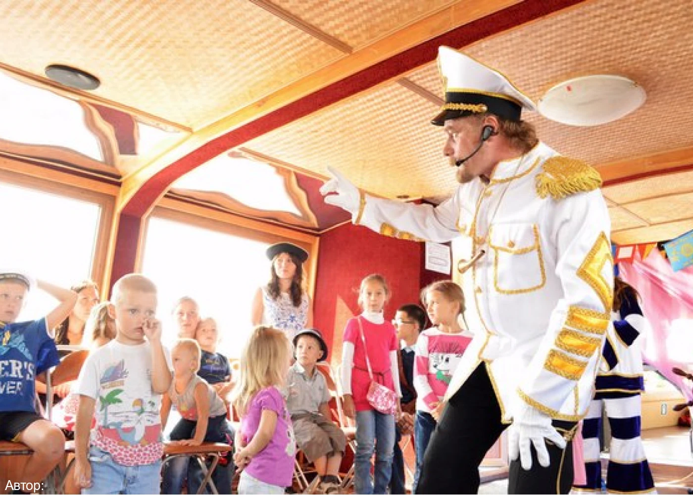 Веселый интерактив для детей продолжается и на теплоходе. Для мальчиков и девочек от трех до двенадцати лет подготовлены развлекательные и развивающие задания: загадки, ребусы, бутылочная почта, школа капитанов. Врунгель и его друзья расскажут о тайнах реки, поведают легенды о первооткрывателях новых земель.