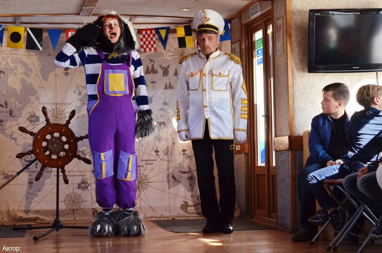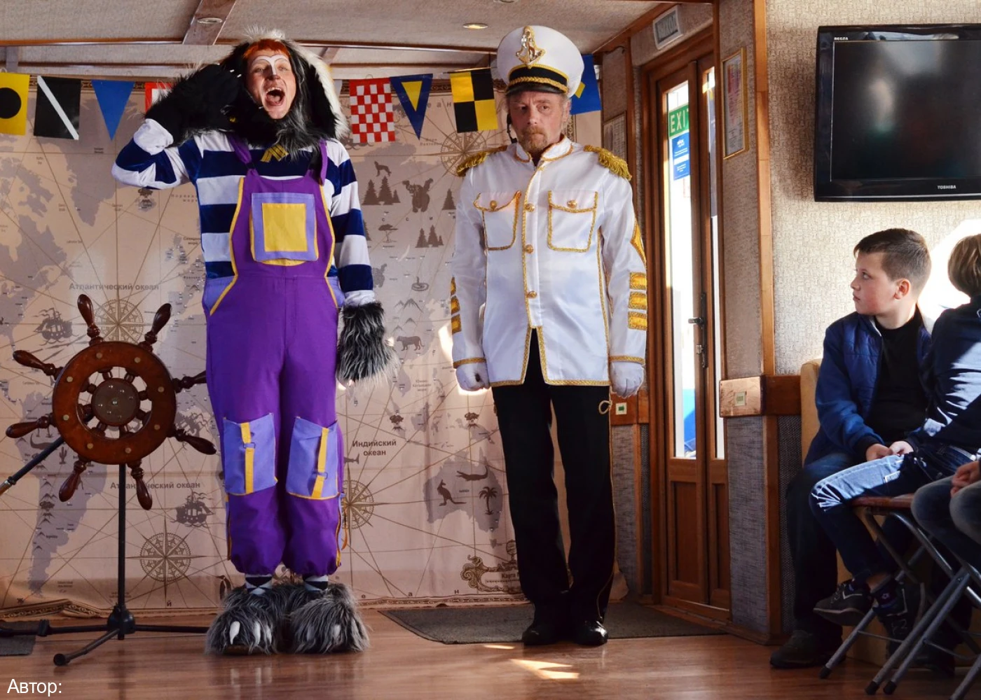 Гостей встречают Юнга и Кот-мореход, знакомятся с будущими путешественниками, проводят экскурсию в игровой форме, приглашают на посадку.