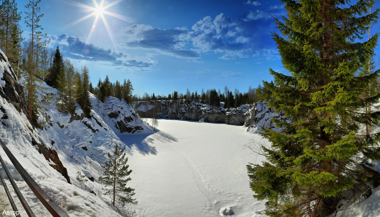 Горный парк Рускеала – главная круглогодичная достопримечательность Карелии. Территория горного парка огромна. Центром интереса является Мраморный Каньон – большое, вытянутое с юга на север озеро с кристально чистой водой и отвесными берегами, состоящими из настоящего мрамора.