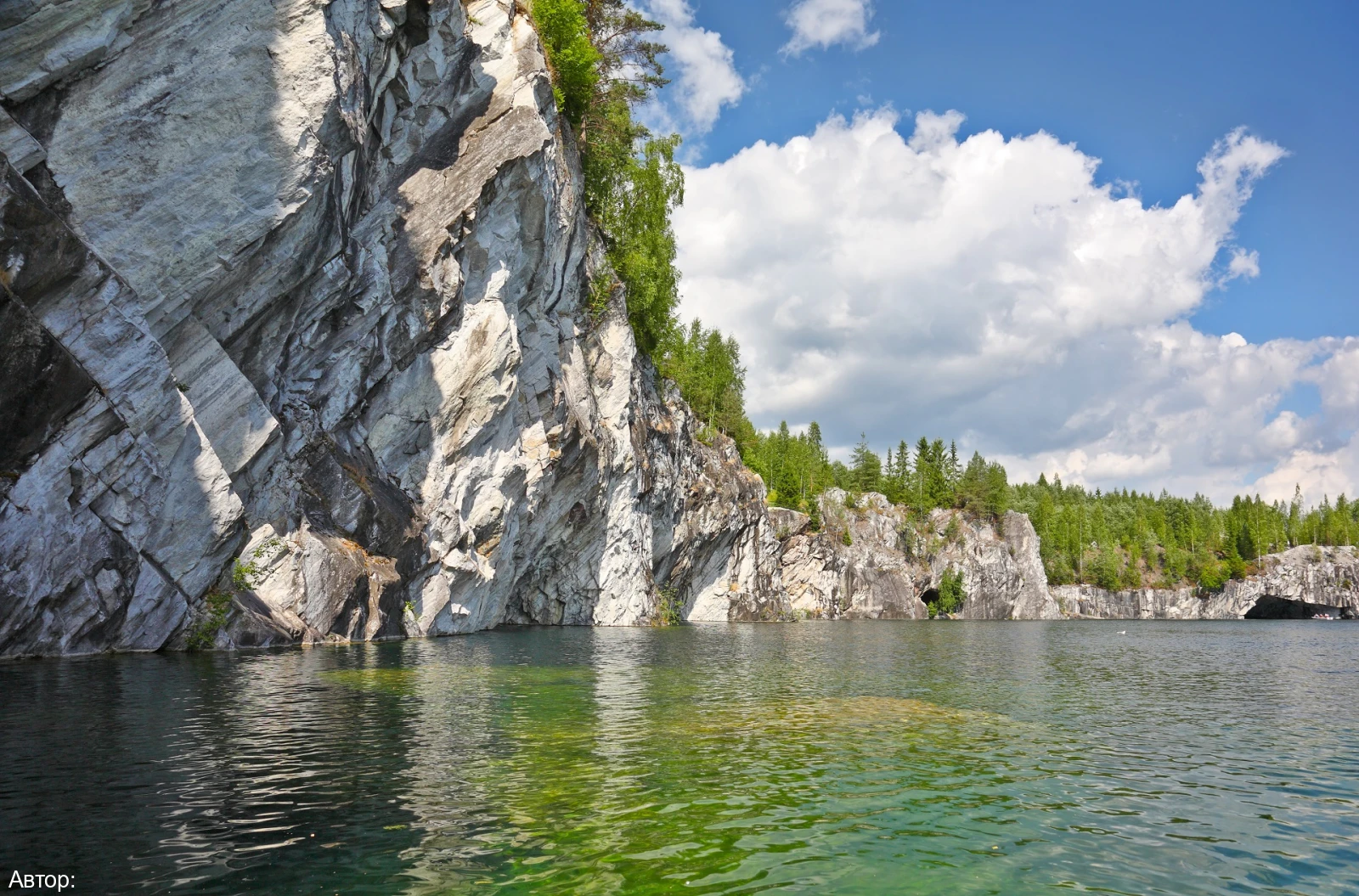 Затем автобус берет курс на главную цель путешествия – Мраморный каньон в Рускеале. Когда-то здесь был карьер по добыче мрамора. Потом он был заброшен, заполнился чистейшей изумрудной водой и стал одной из красивейших достопримечательностей республики Карелия.