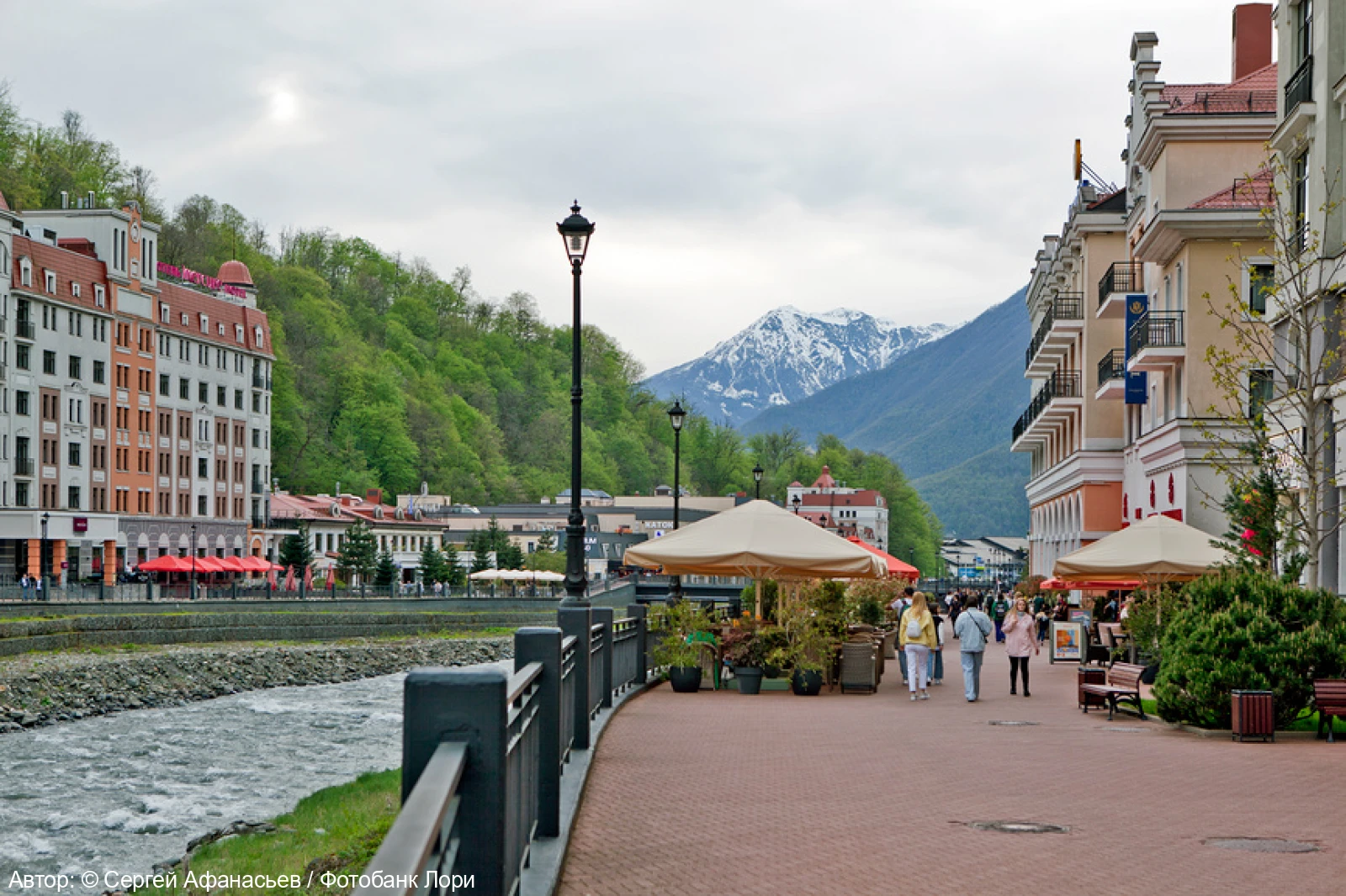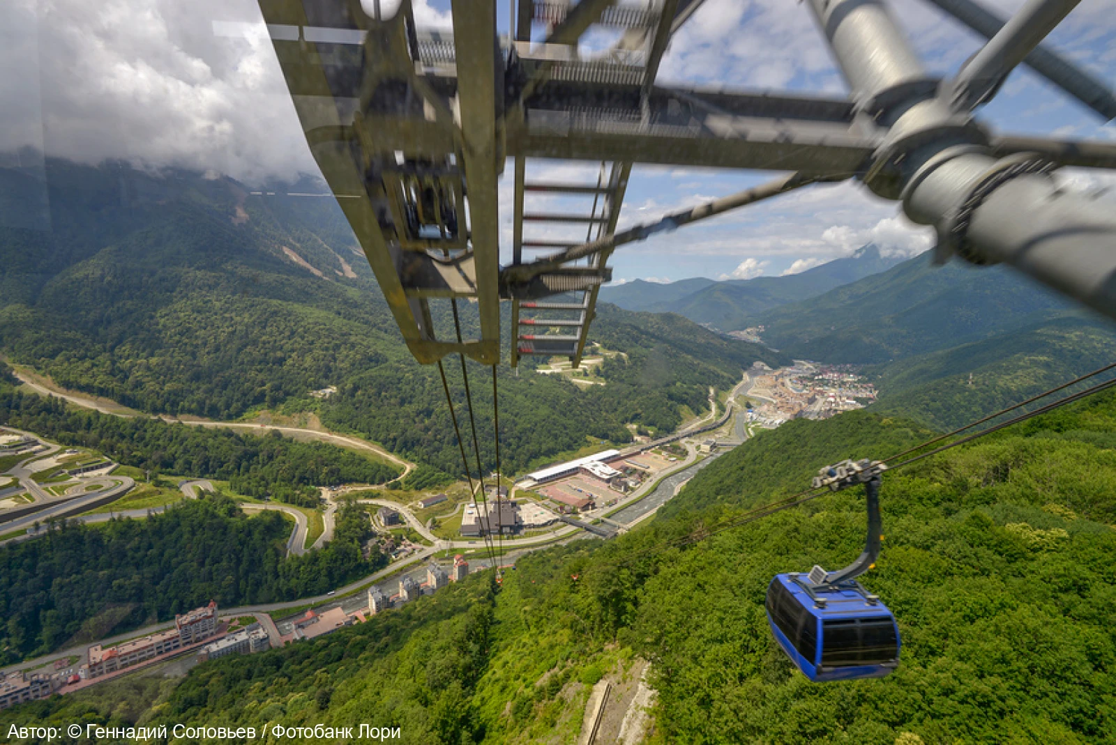 Вы подниметесь на канатной дороге до горной Олимпийской деревни на знаменитом курорте Роза Хутор. На высоте 1 170 метров перед вами откроются захватывающие виды на величественные горные пейзажи. Это место, где природа и человек создали гармонию, которая поражает воображение.