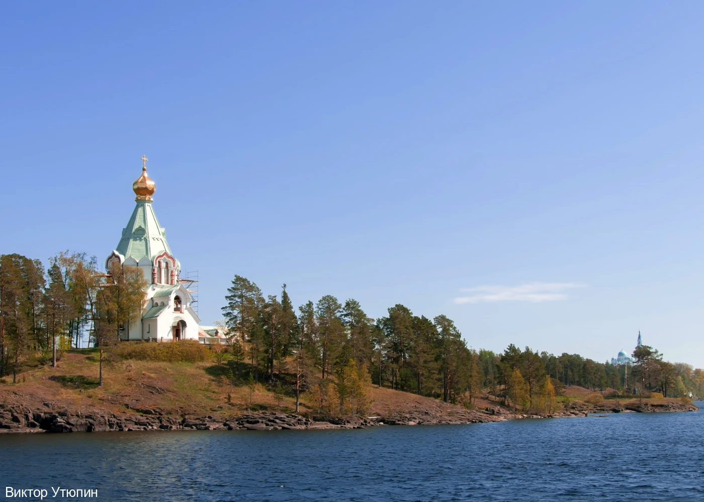 Экскурсия в один из красивейших скитов Валаама, где вновь отреставрированный шатровый храм во имя святителя Николая Чудотворца, белоснежный келейный корпус, яблоневый сад, массивный гранитный поклонный крест и даже небольшая хибарка бывшей монастырской таможни создают неповторимый по своему изяществу архитектурно-ландшафтный ансамбль.