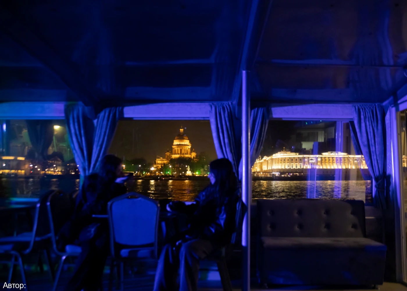 - любое место на просторном двухпалубном теплоходе с закрытыми застекленными зонами со столиками и открытым танцполом под навесом.