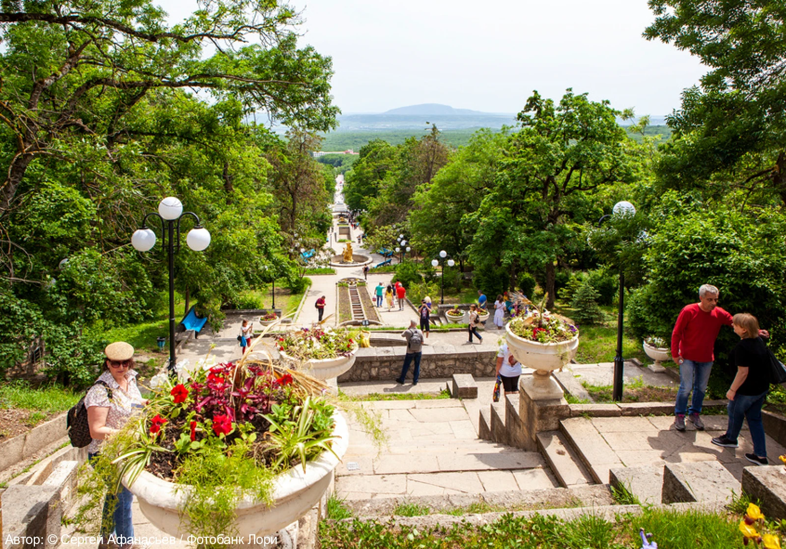 Вы пройдёте по Железноводску, представляющему собой огромный ландшафтный парк. Прямо в городе есть горы, а железноводский парк – это часть реликтового леса, где клёны, дубы и каштаны растут рядышком с пальмами и кактусами.