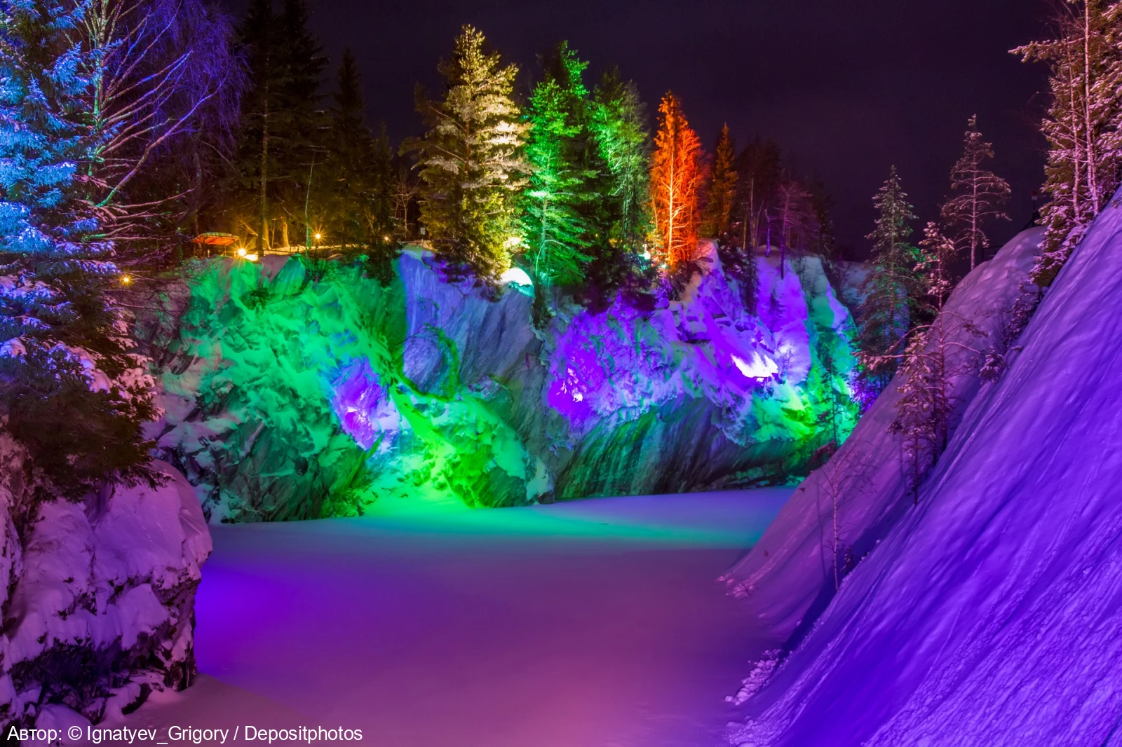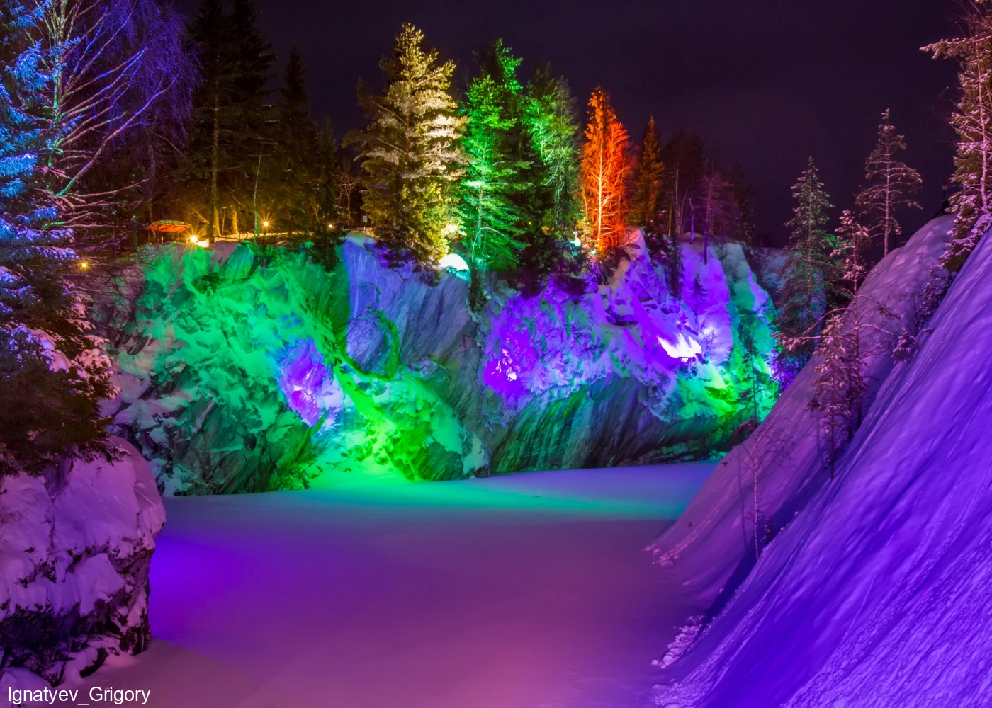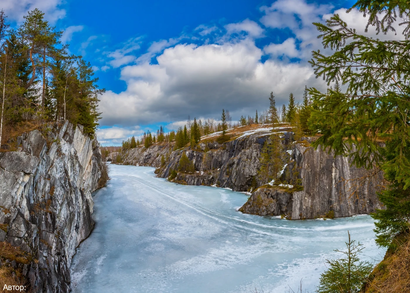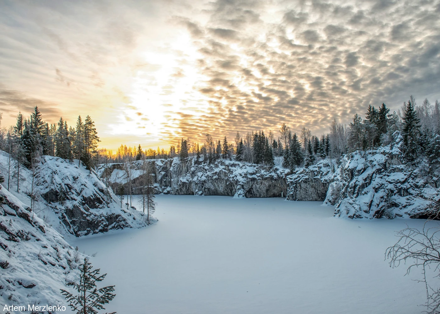 Горный парк Рускеала – главная круглогодичная достопримечательность Карелии. Территория горного парка огромна. Центром интереса является Мраморный Каньон – большое, вытянутое с юга на север озеро с кристально чистой водой и отвесными берегами, состоящими из настоящего мрамора.