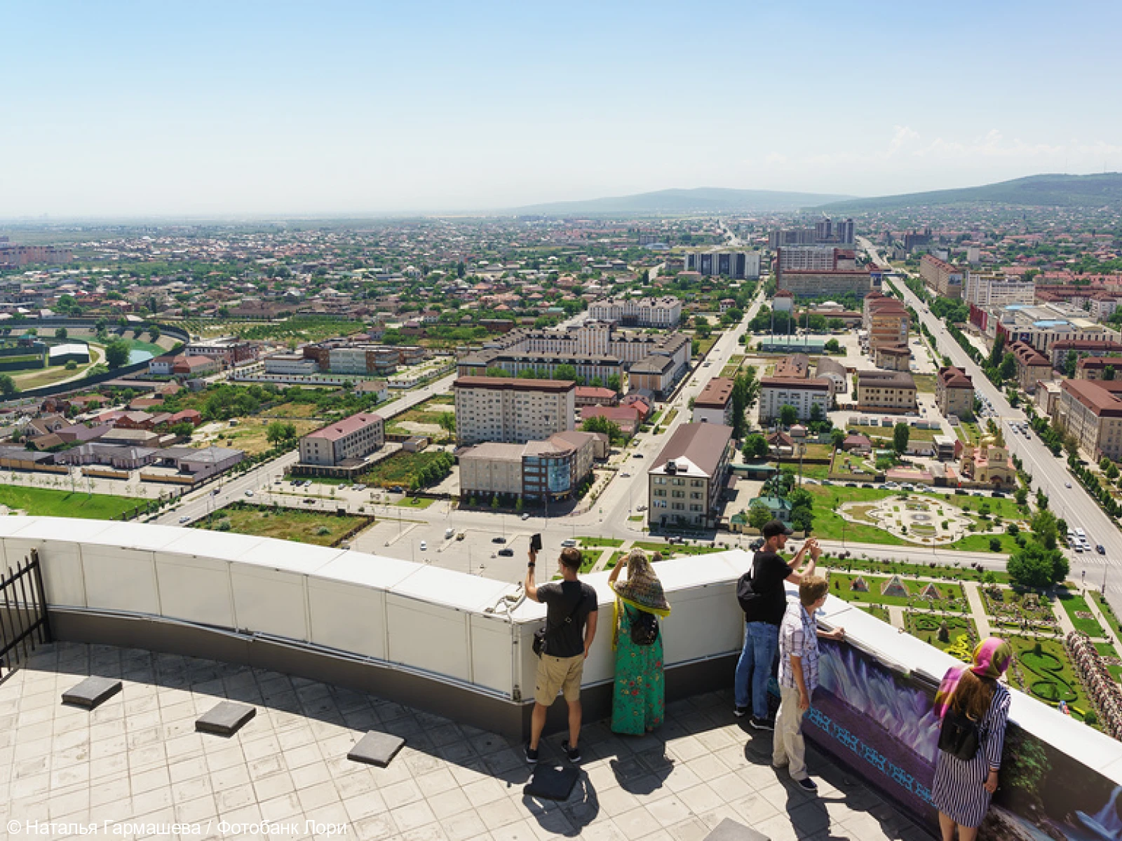 Весь Грозный и его окрестности отлично просматриваются. С высоты прекрасно видны проспект Путина, городские улицы, петляющая по городу речка Сунжа, величественная мечеть «Сердце Чечни», небоскрёбы, чудесный парк цветов.