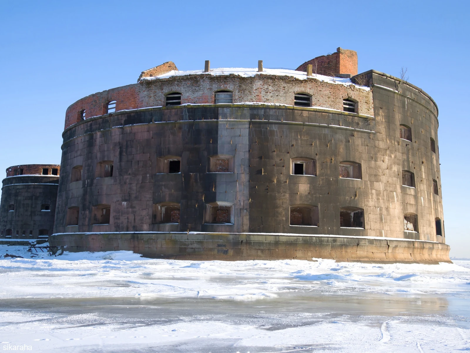 Форт начали строить в 1838 году. Для прочности в основание форта забили 5335 свай. Стены выложили из особого кирпича и облицевали гранитом из финских каменоломен. Пожалуй, это самый красивый форт в Кронштадте, хотя его стены и почернели от пожара.