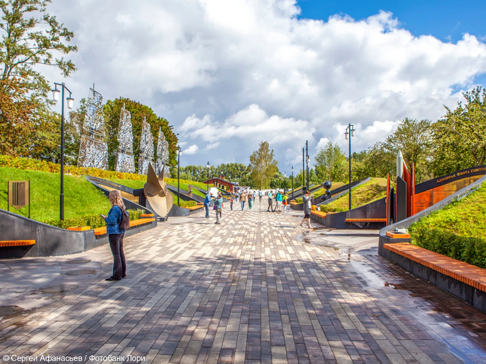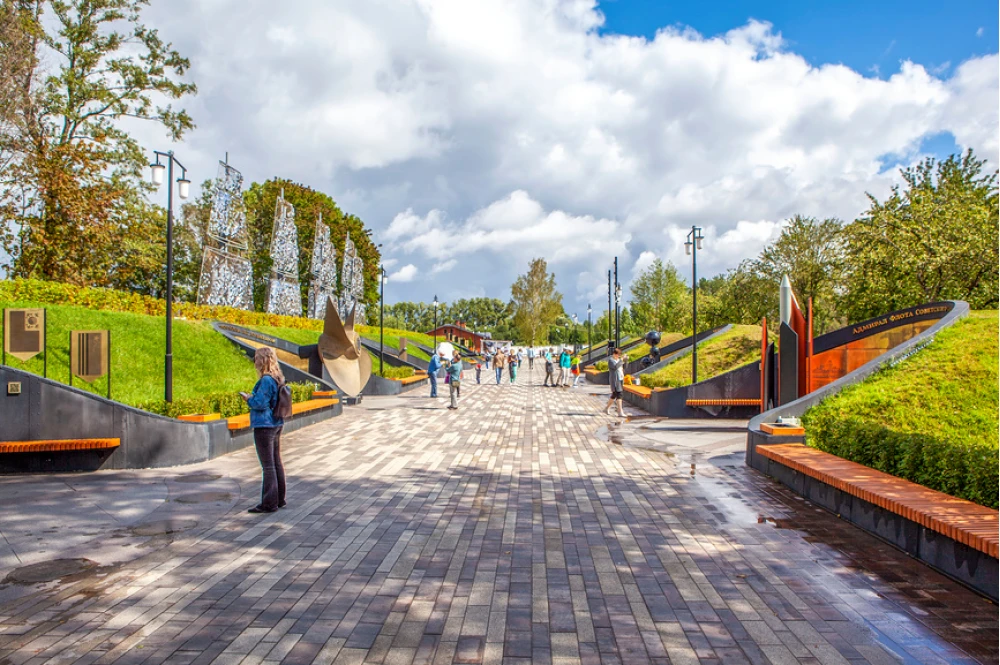 Здесь несколько детских игровых и тематических площадок, скейтпарк, яблоневый сад с прудом для любителей тихого отдыха, множество арт-объектов морской направленности.