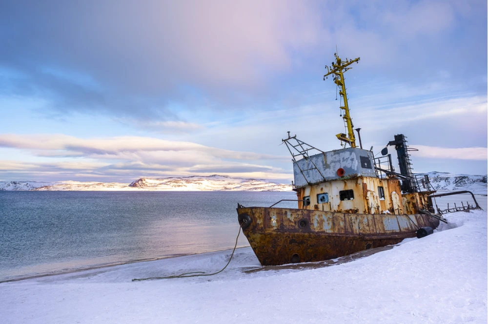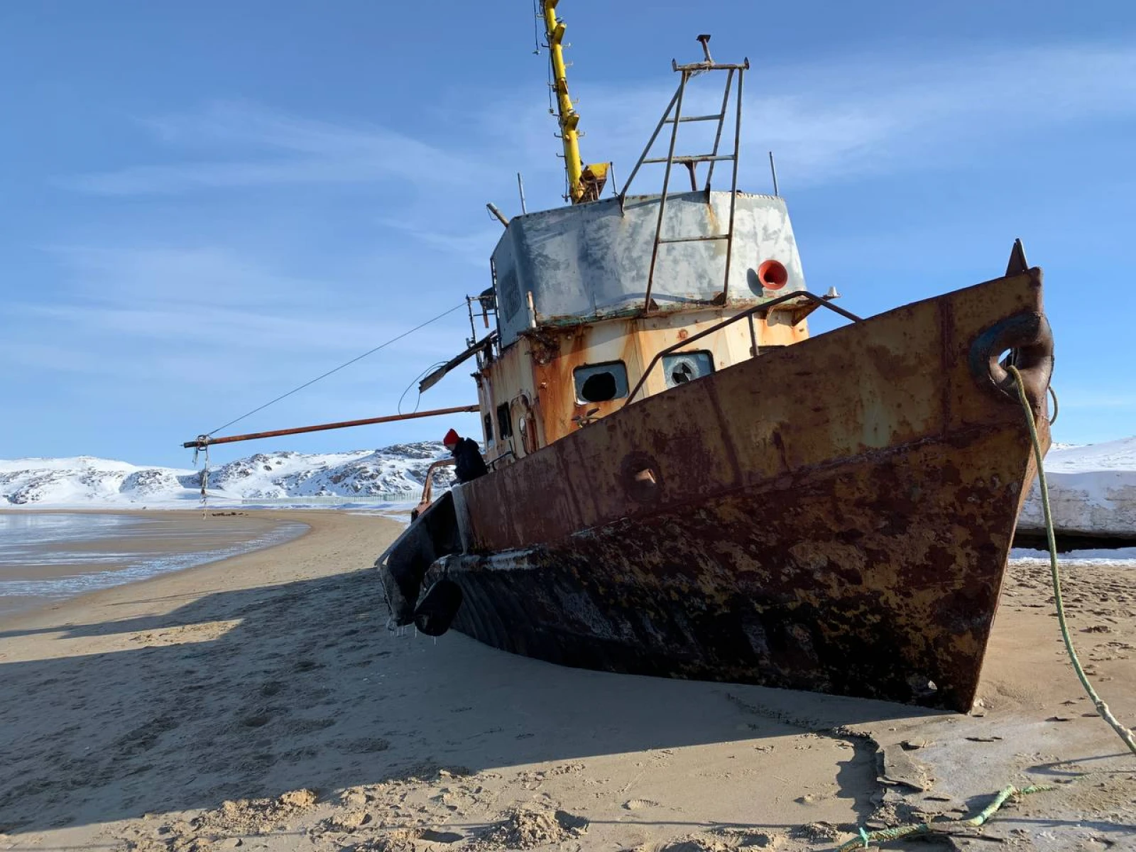 Кладбище кораблей находится в небольшой живописной бухте недалеко от села Териберка. Брошенные людьми суда, полузатопленные, частично засыпанные песком, постепенно разрушаются на открытом воздухе. Морская вода и дожди уже почти полностью уничтожили деревянные палубы и добрались до металла.