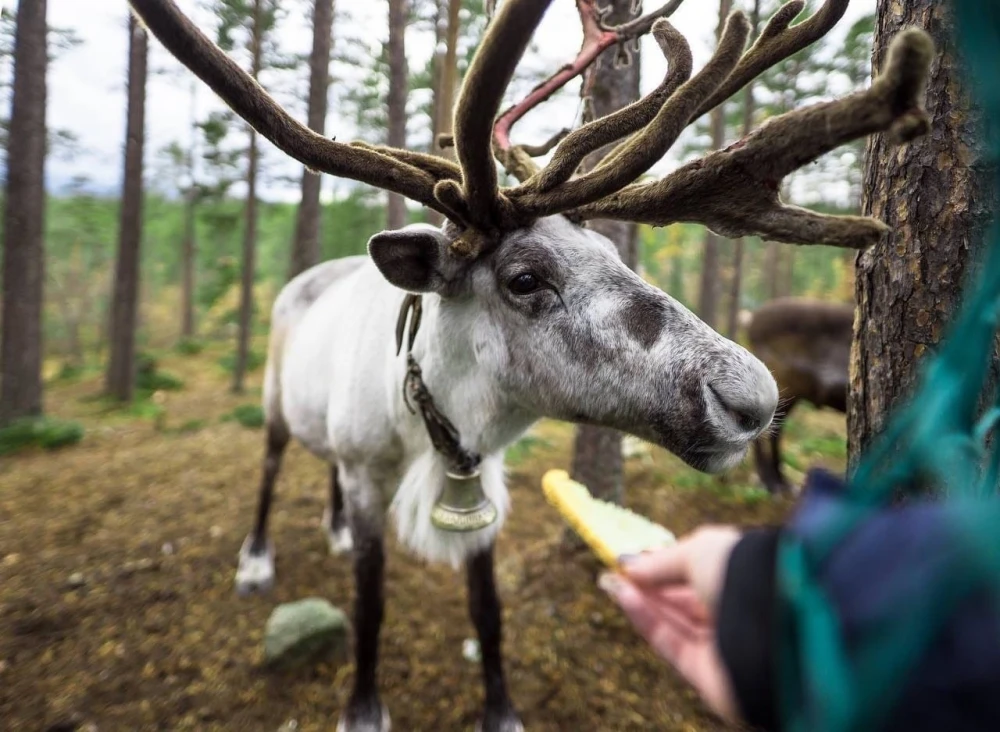 Домашние северные олени – симпатичные и добрые животные. На экскурсии в Саамскую деревню, вы сможете пообщаться с ними: погладить и покормить. Можно даже прокатиться на упряжке северных оленей.
