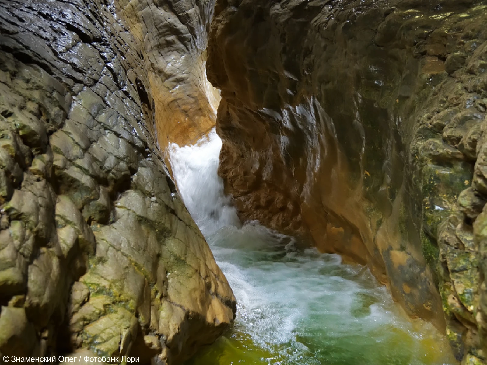 Чем ближе вы к цели, тем шире становится каньон. Постепенно он превращается в вытянутую огромную пещеру с округлыми «стенами» и извилистыми поворотами. В этом месте скалы наверху смыкаются так, что остается лишь округлое отверстие, через которое падают потоки воды. Это и есть Салтинский водопад, его высота 20 м.