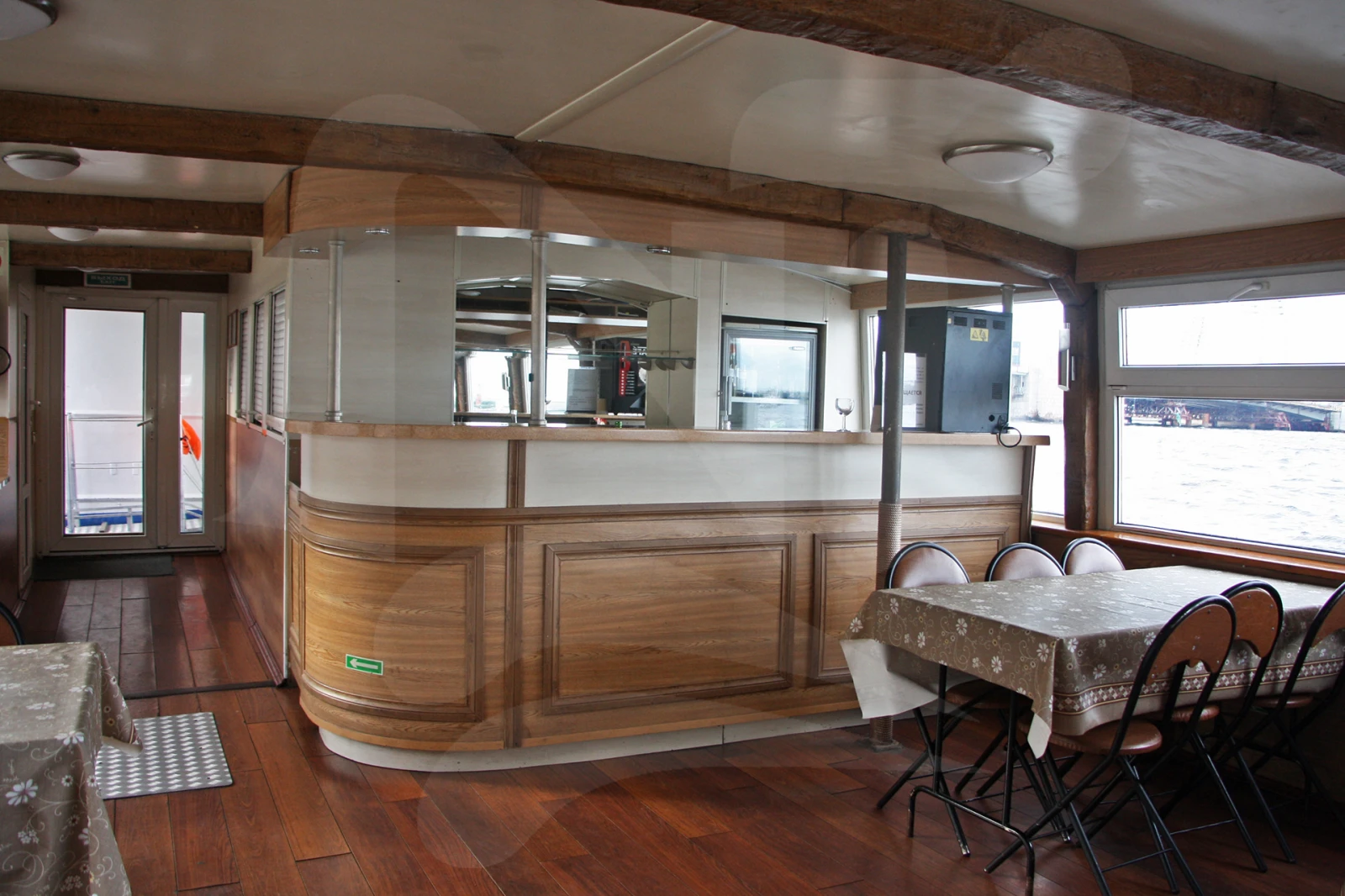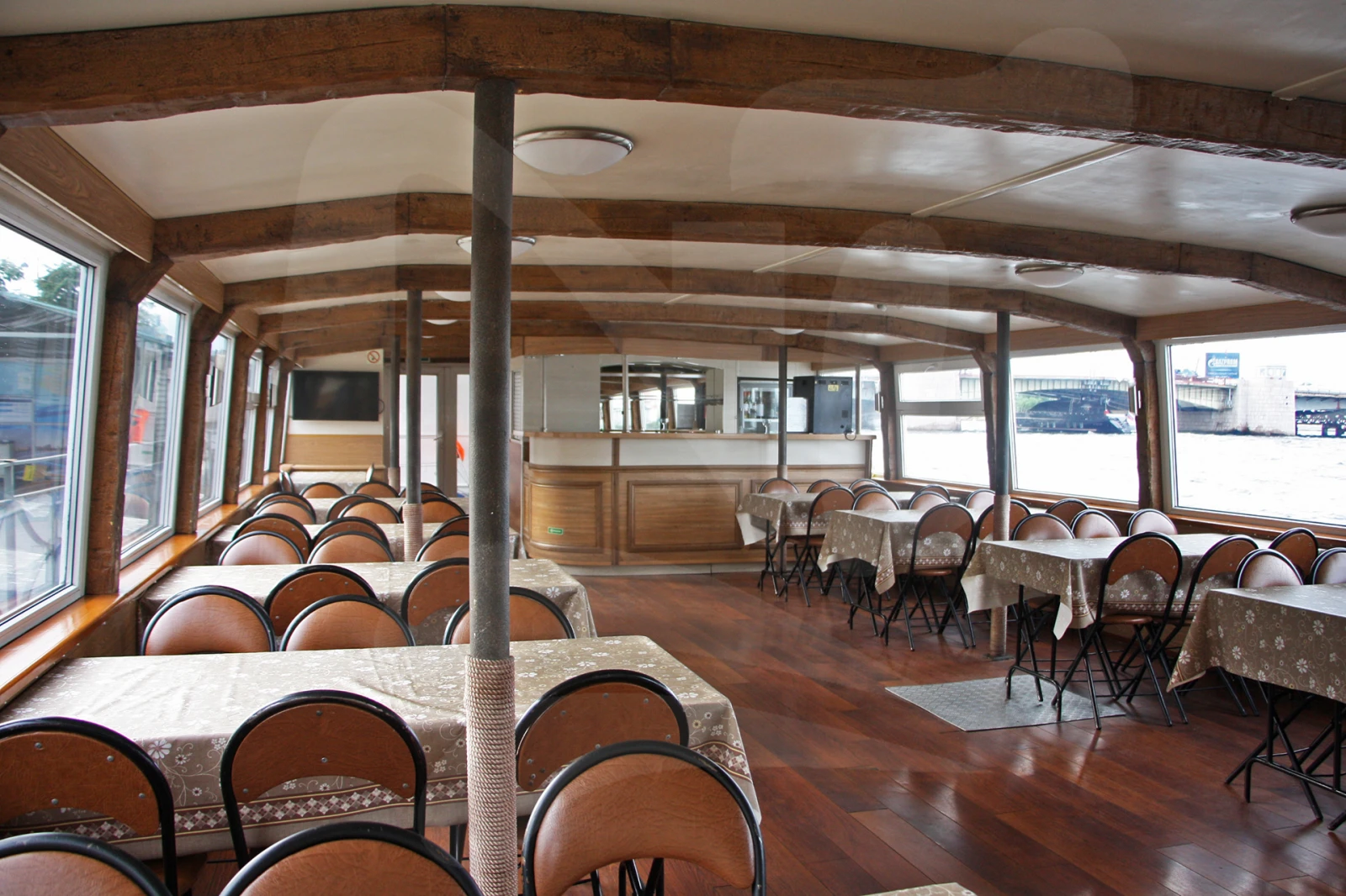 Прогулочный теплоход повышенной комфортности. Его интерьер выдержан в тёплых тонах, с элементами под дерево. В носовой части главной палубы расположены уютные диваны. Верхняя палуба крытая, с просторной открытой прогулочной площадкой. Оптимальная вместимость – 75 человек.