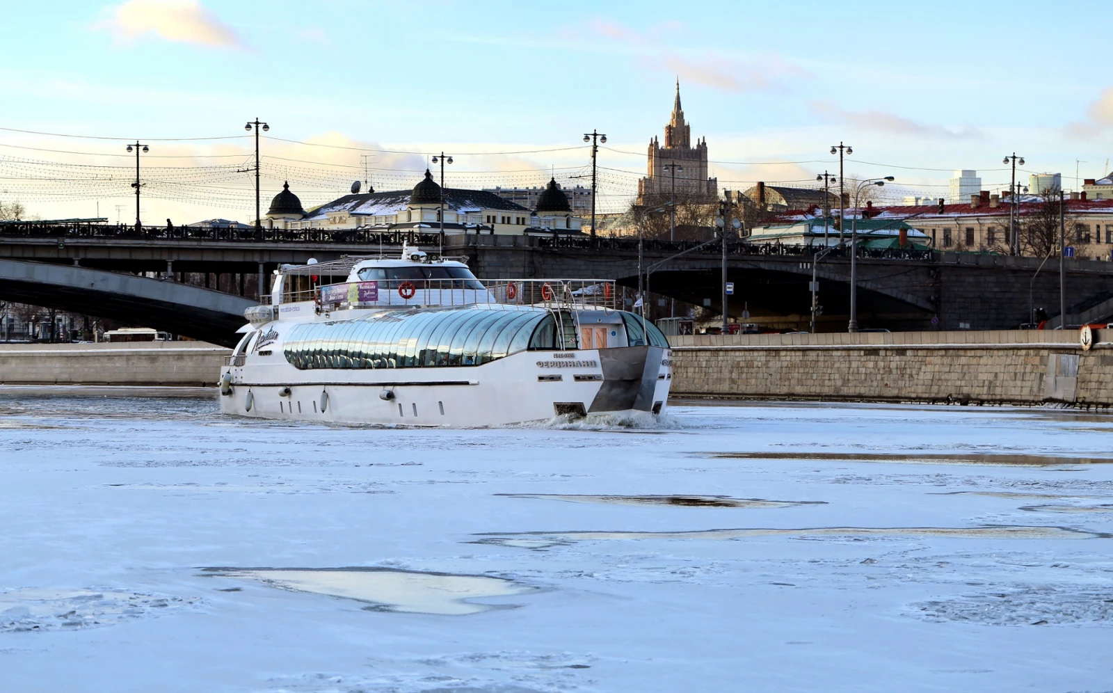 Белоснежные красавицы-яхты, благодаря конструктивным особенностям и ходовым качествам, предназначены для круглогодичных экскурсионно-развлекательных рейсов по Москве-реке, так как с легкостью преодолевают лёд и обеспечивают комфорт для пассажиров даже в условиях суровой русской зимы.